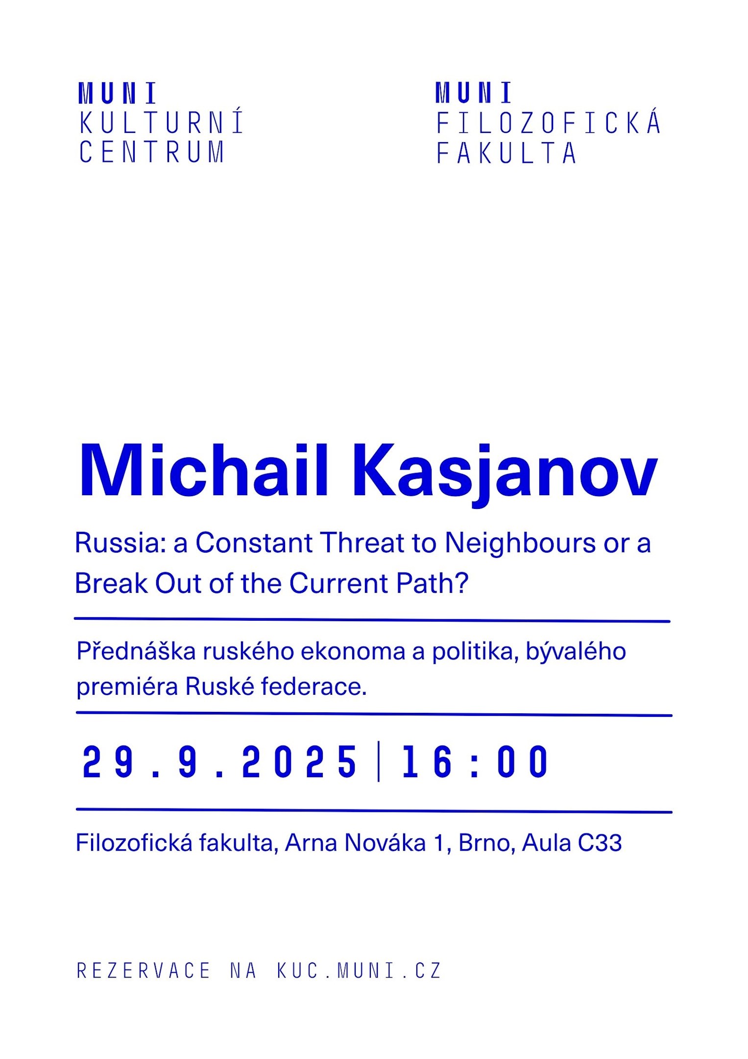 Přednáška na aktuální téma „Russia: a Constant Threat to Neighbours or a Break Out of the Current Path?" proběhne v anglickém jazyce v pondělí 29. 9. od 16 hodin v Aule C33 Filozofické fakulty Masarykovy univerzity.